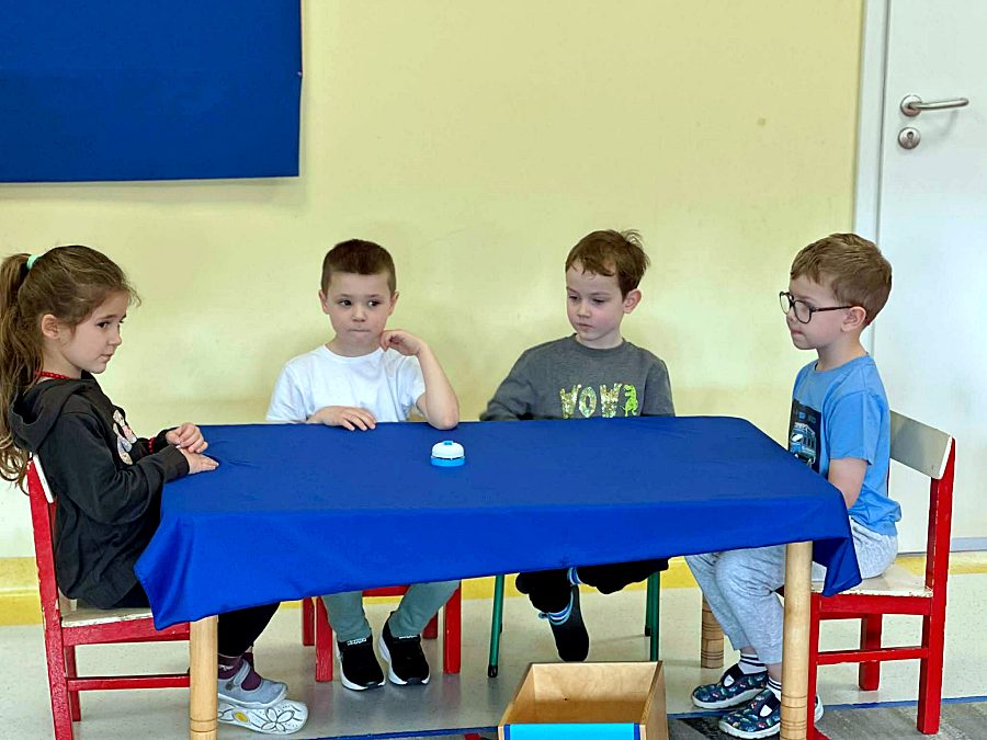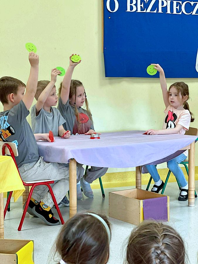 Dzieci rywalizowały w 4 drużynach. Wszystkie grupy wykazały się dużą wiedzą o zasadach bezpieczeństwa, bezbłędnie i wyczerpująco odpowiadały na pytania prowadzących. Wyróżnienie zdobyła grupa fioletowa.