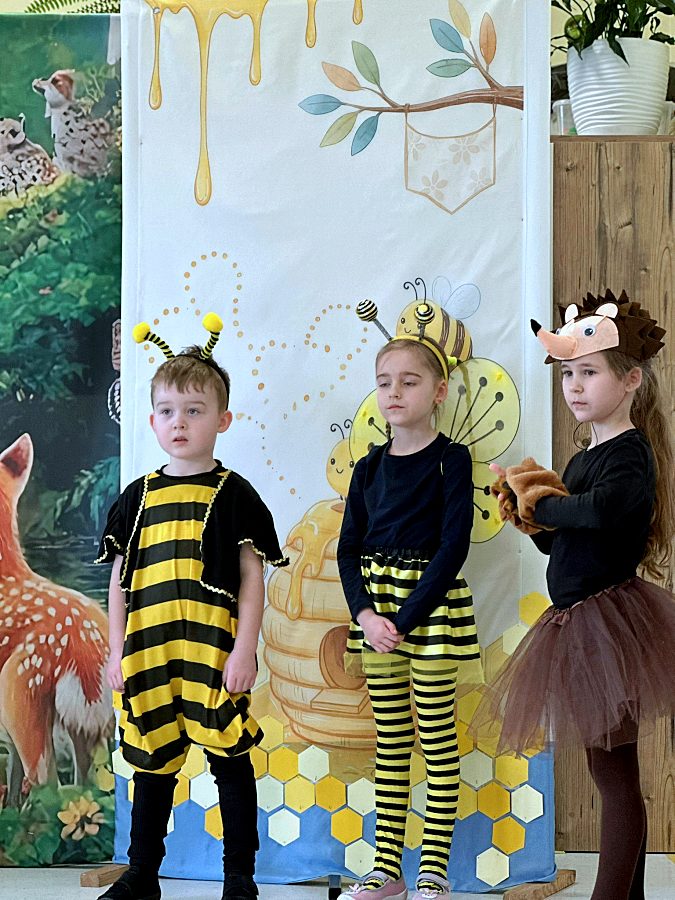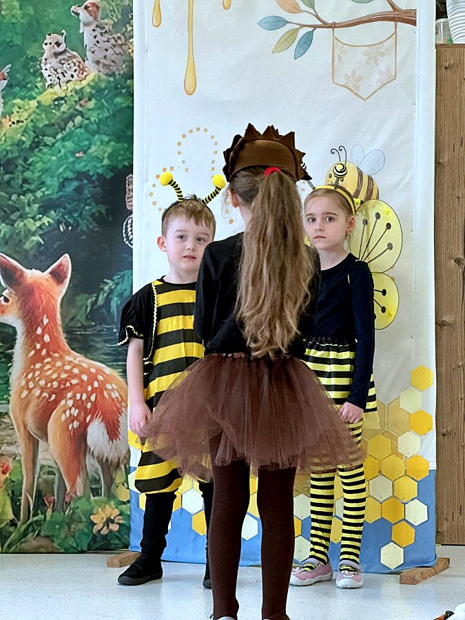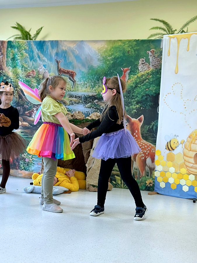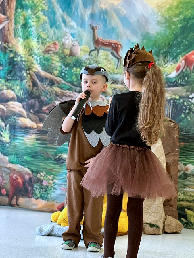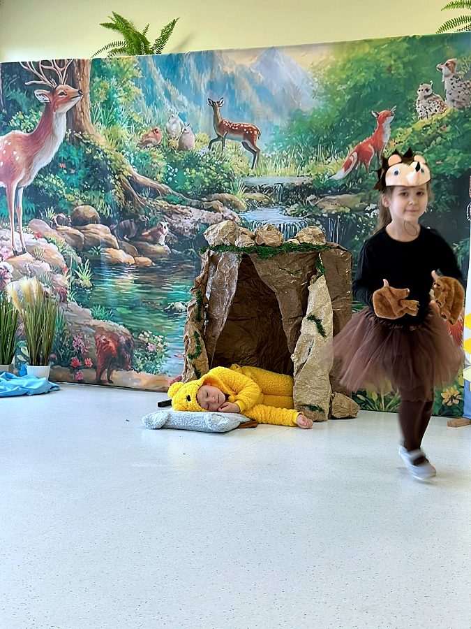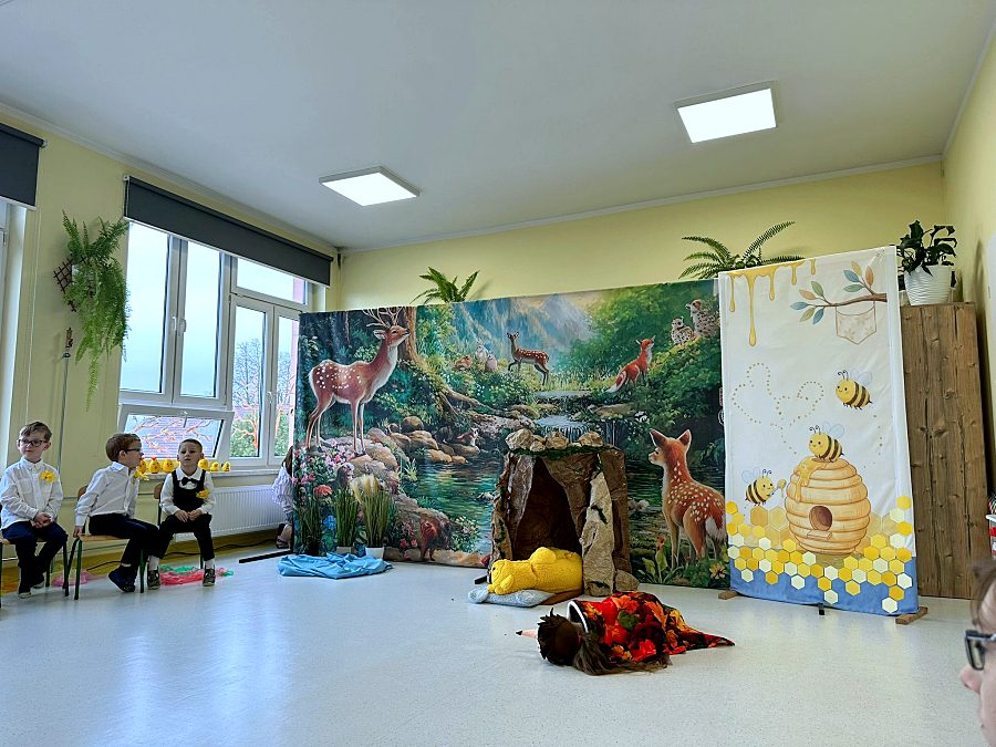 20 marca w naszym przedszkolu przywitaliśmy wiosnę przedstawieniem pt. „Bajka o śpiącym niedźwiedziu”. Przedstawienie przygotowały dzieci z przedszkolnego koła teatralnego pod kierownictwem Pani Urszuli Boguckiej. Mieliśmy okazję zobaczyć jak leśne zwierzątka budziły niedźwiedzia ze snu zimowego, ale tylko Pani Wiośnie się to udało.