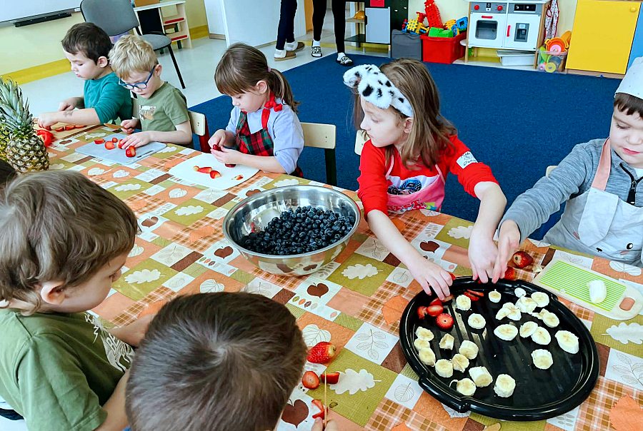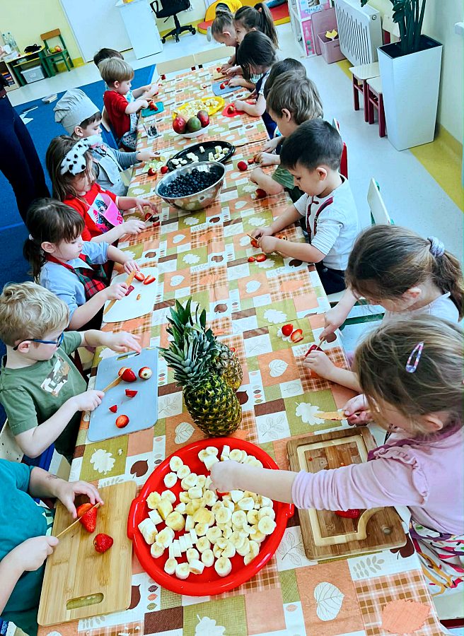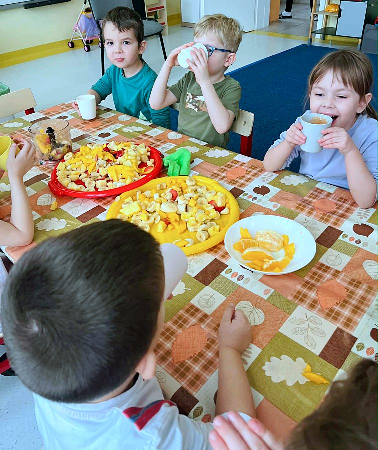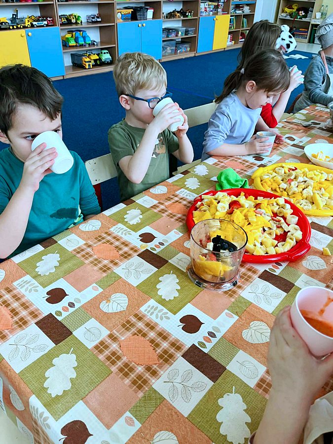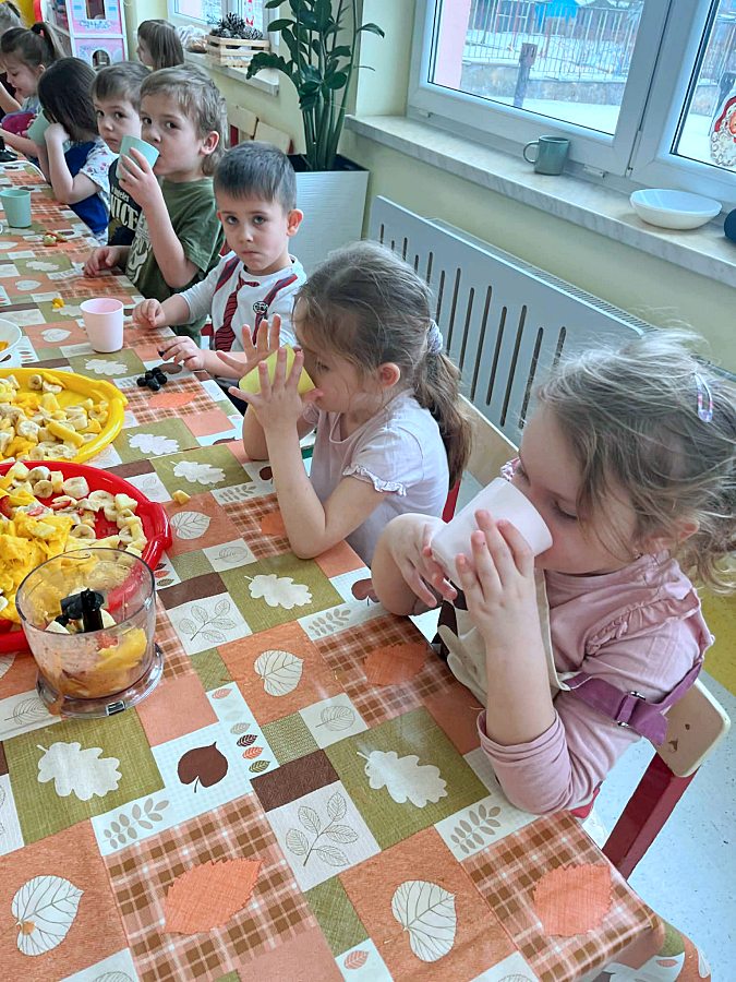 Dzieci doskonale wiedzą, że aby być zdrowym należy się prawidłowo odżywiać. Z okazji Walentynek postanowiliśmy zrobić koktajle owocowe. Przed przystąpieniem do pracy dzieci zapoznały się z urządzeniem do robienia koktajlu oraz utrwaliły zasady bezpieczeństwa. Przedszkolaki z ogromnym zaangażowaniem przygotowywały napoje. To była zdrowa i pyszna zabawa!