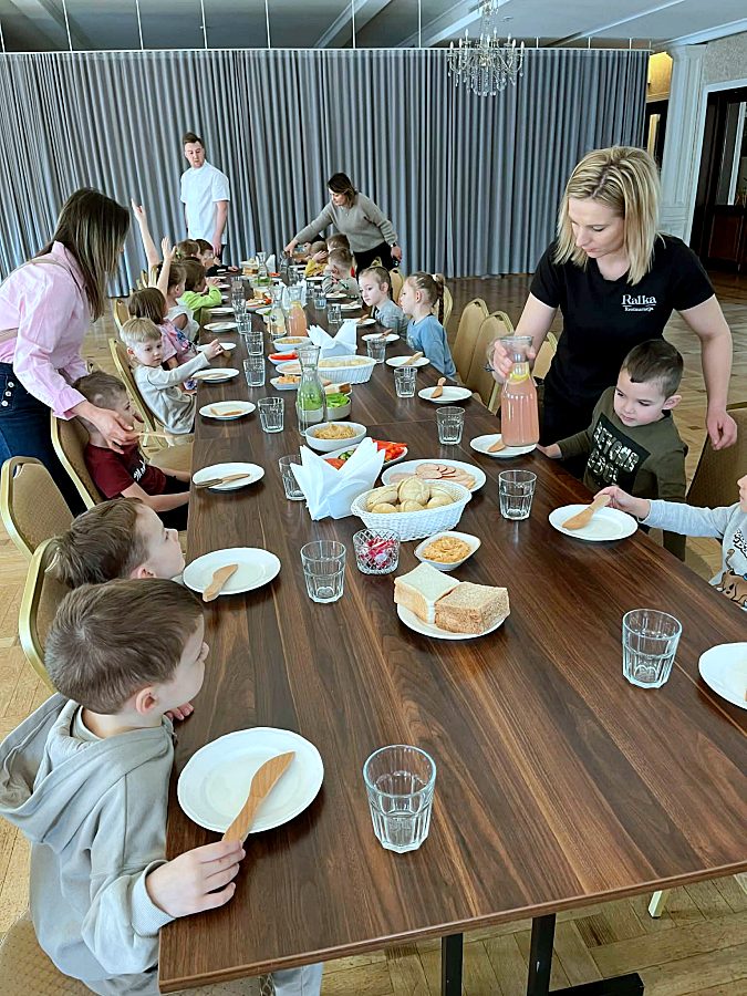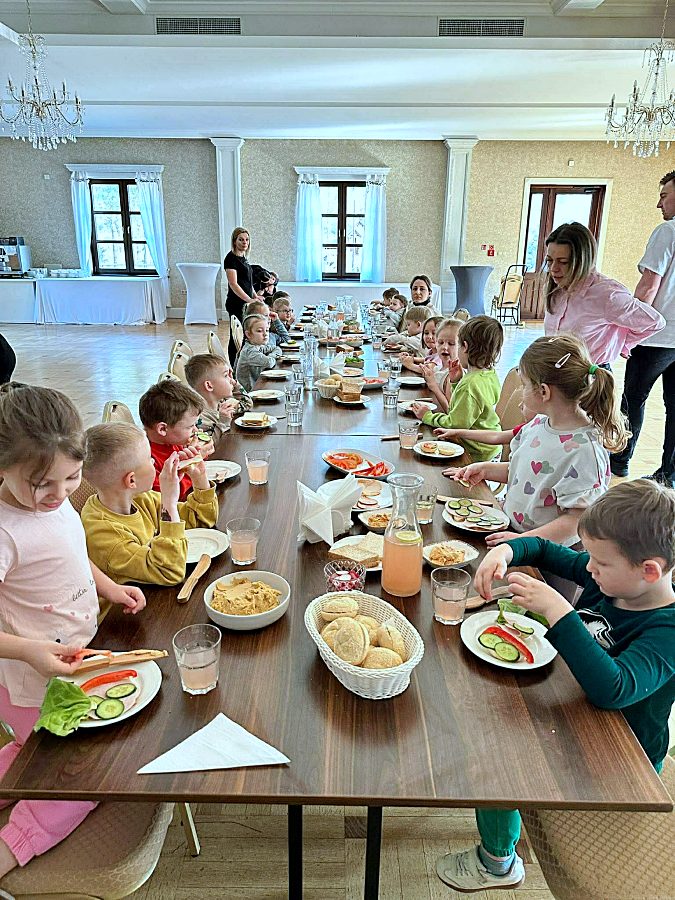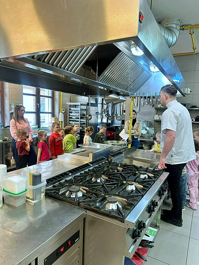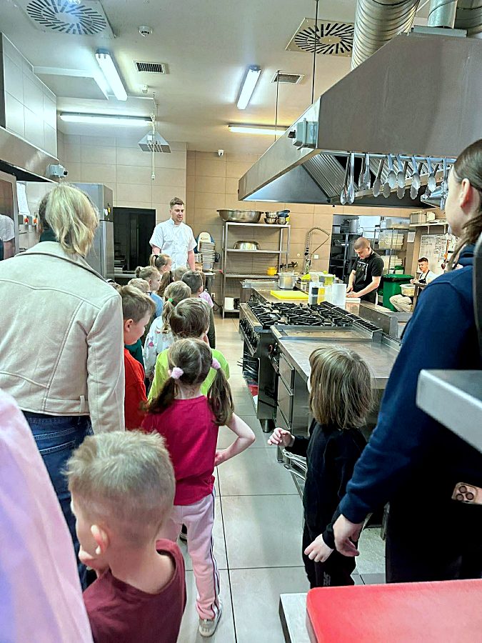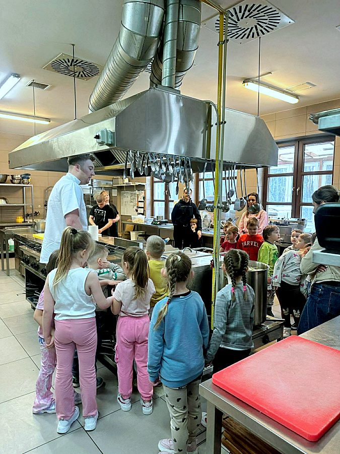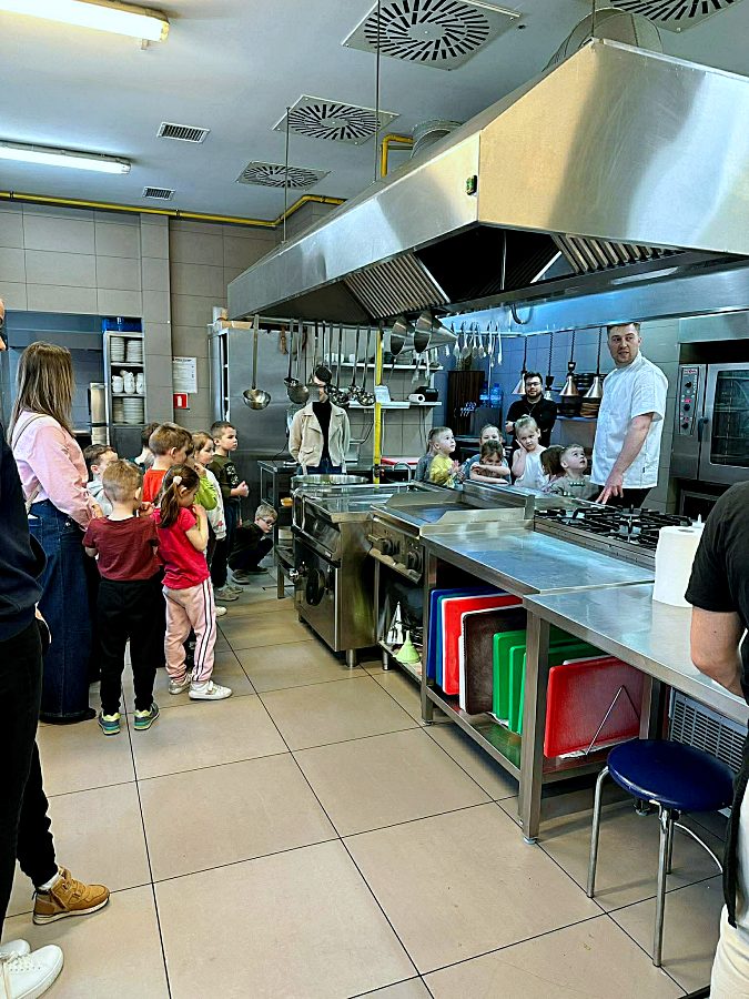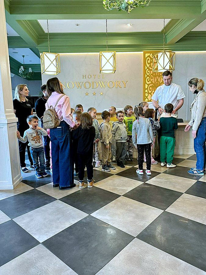 30 marca grupa IV „Żabki” udała się na wycieczkę do Hotelu Nowodwory. Zobaczyliśmy jak wyglądają i do czego służą: recepcja, pokoje, sale konferencyjne, restauracja hotelowa oraz kuchnia. Dzieci poznały pracę kucharza w tak dużym obiekcie. Następnie mieliśmy przygotowane warsztaty kulinarne. Dzieci przyrządzały zdrowy posiłek- pyszne kanapki. Na zakończenie spotkania, dzieci wręczyły podziękowanie pracownikom hotelu i otrzymały słodki upominek, który zabrały ze sobą do domu. Jeszcze raz dziękujemy za zaproszenie i świetną zabawę!
